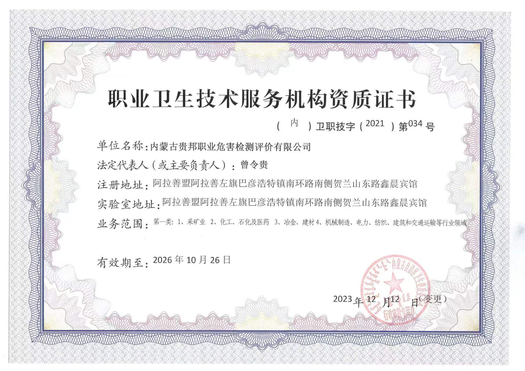 內(nèi)蒙古貴邦職業(yè)危害檢測(cè)評(píng)價(jià)有限公司(www.yndskf.com)版權(quán)所有 地址:阿拉善盟阿拉善左旗賀蘭山東路加氣站南側(cè)鑫晨賓館一樓 24小時(shí)熱線:18947252199 蒙ICP備:蒙ICP備21006705號(hào)-1 公安備案號(hào):50011802010212